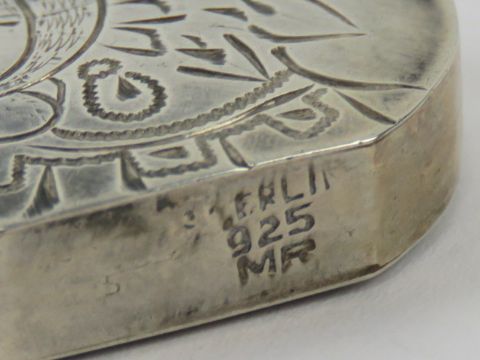 A Native American (Navaho style) sterling 925 silver miniature perfume bottle having makers mark MR, 2.9cm wide.