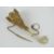 A Victorian Tussie Mussie (Tussy Mussy) posy holder having carved mother of pearl handle and a gilt metal cage decorated with acorns, 13.5cm in length.