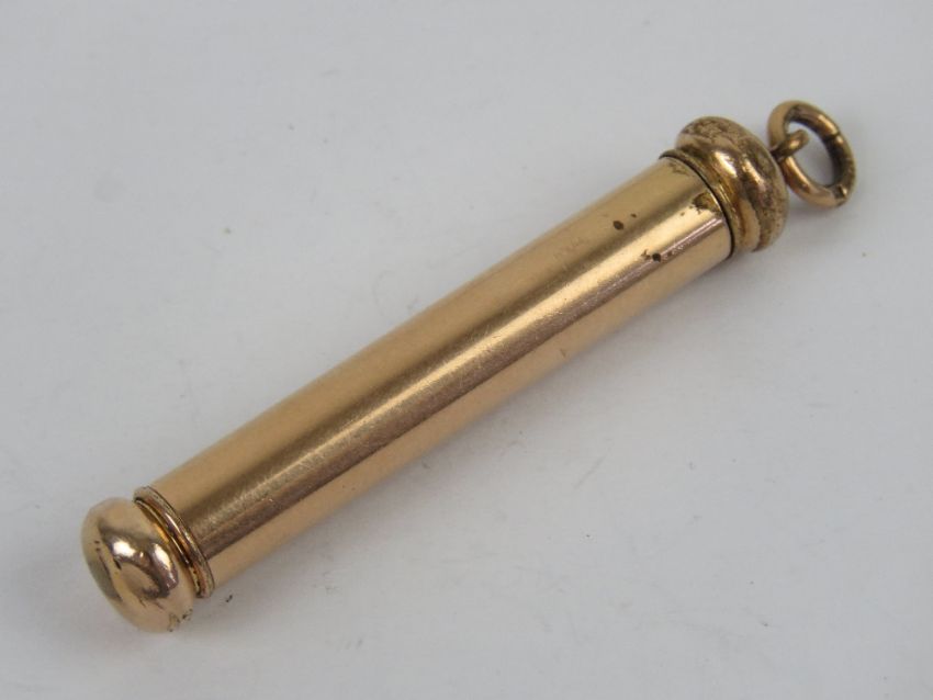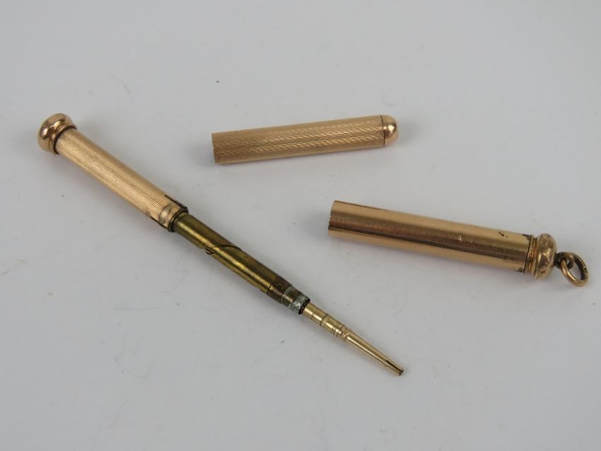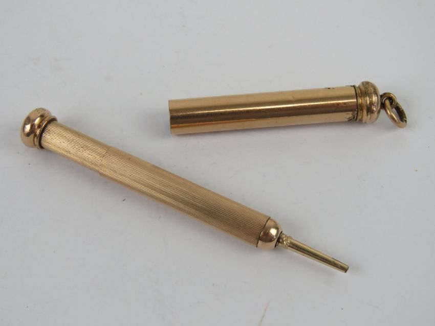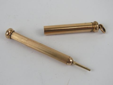 A gilded metal propelling pencil having chatelaine loop to top.