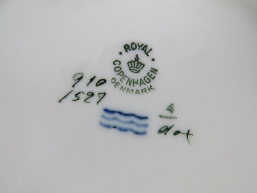 A Royal Copenhagen creamware bowl floral decoration throughout and part gilded, together with three items of Royal Doulton gilded creamware bearing backstamp J J Sweeney Houston and being a small saucer dish and two deep dishes.