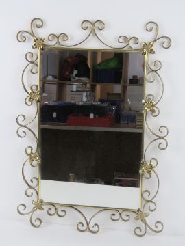 A contemporary square-shaped mirror in gold coloured floral frame, frame 61.5 x 43.5cm.