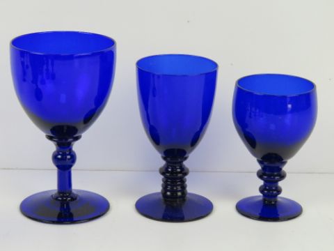 A quantity of Bristol Blue glassware including a pair of wine glasses, pair of liqueurs, five smaller wine glasses and four small goblets.