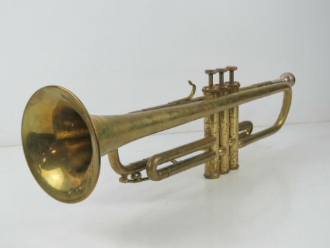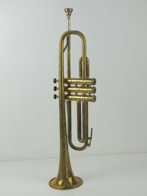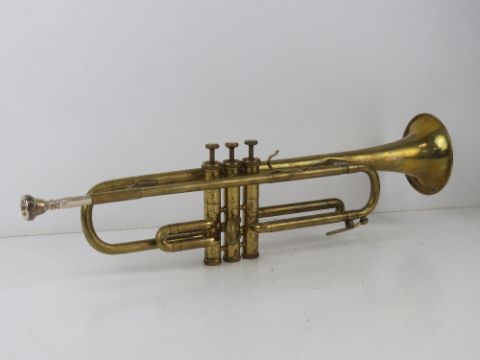A vintage brass trumpet within original fitted case, slightly a/f, having mouthpiece.