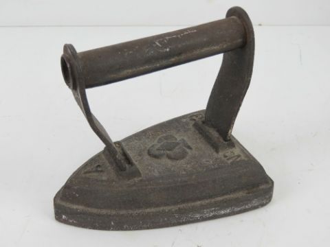 A No3 cast metal iron having ace of clubs design upon.