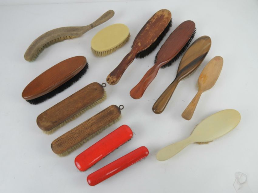Twelve assorted vintage clothes brushes, crumb brush, etc.