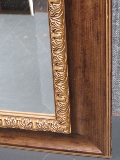 A contemporary gilt framed bevelled edge wall mirror, 104 x 75cm.