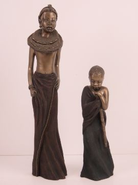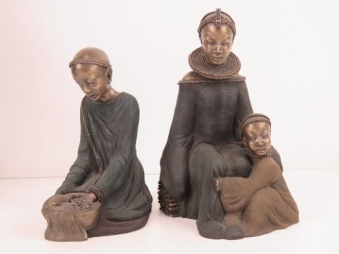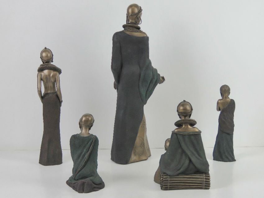 A quantity of contemporary limited edition figurines by Soul Journies, as modelled by Stacey Bayne. Large figurine 504/5000, Noni 'little treasure', Bahiya 'beautiful one', chambo 'little creation', and Salima 'in safe hands'. 39 - 15cm in height. Five in total.