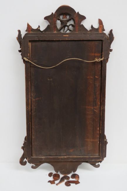 An early 19thC walnut framed wall mirror, pierced and carved throughout, a/f, 75 x 40cm.