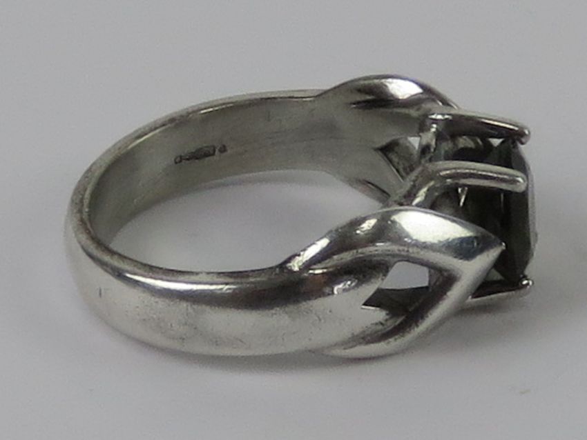 A HM silver men's ring having central round cut green stone approx 8.9mm dia, hallmarked Sheffield, size V-W, 10.8g.