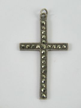 A silver and marcasite cross or crucifix pendant, stamped Sterling to back, measuring 4.6cm in length.