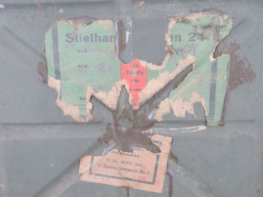 A WWII German stick grenade transit case , dated 1942 upon.