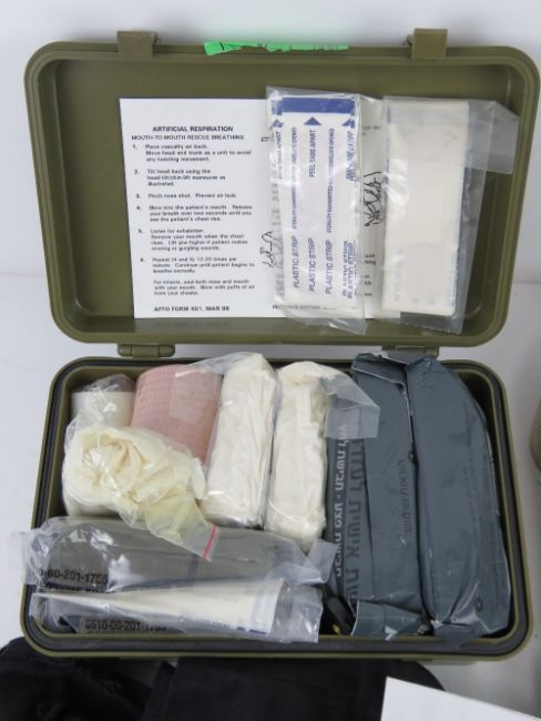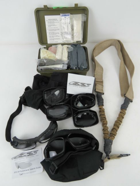 A US Vietnam first aid kit having medical accessories. Together with SF sling, two British Army EES operational googles and spare lenses.