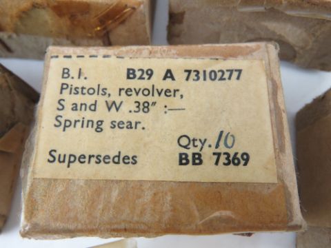Fifteen empty Smith & Wesson .38 parts boxes.