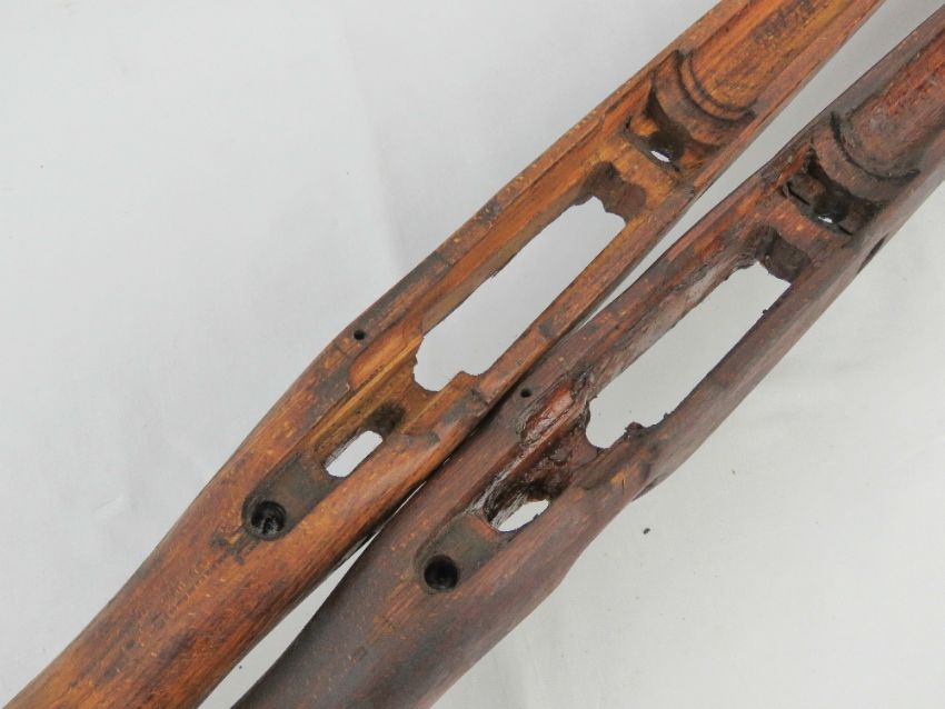 Two KAR98 wooden stocks, one has a makers mark dot and serial number 9669.