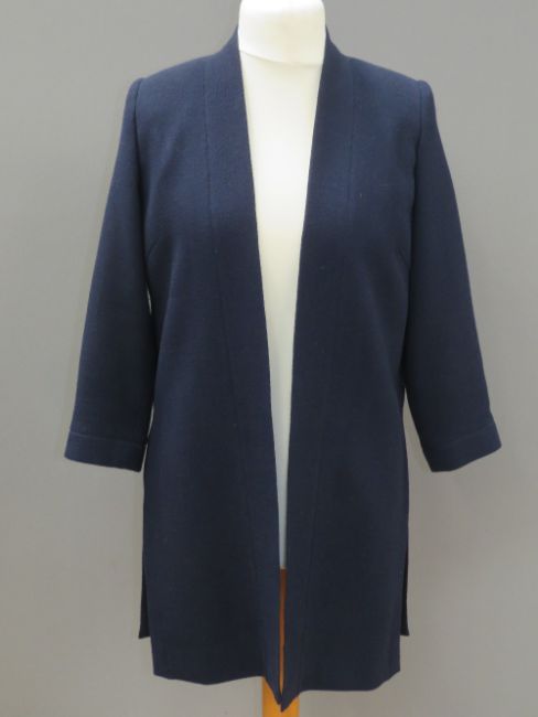 Designed and made by Rosemarie van Bree; navy blue jacket, approx measurements - 37" chest, 35.5" length to back, 13.5" sleeve.