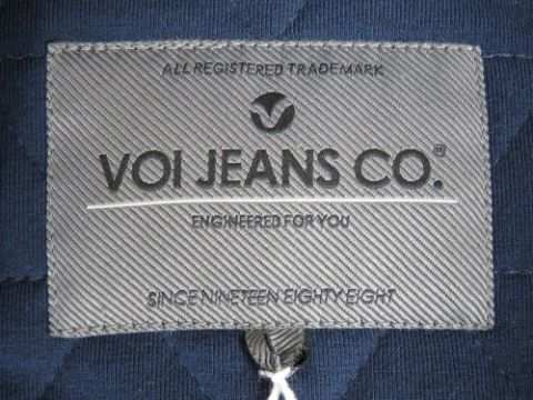 A Voijeans Co wool jacket in navy blue, size L, 40% wool.