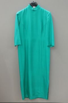 A green 3/4 length tunic dress, no labels, approx measurements - 37" chest, 49" length to back, 10" sleeve.