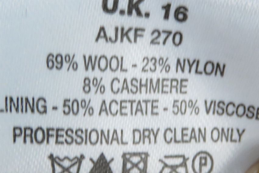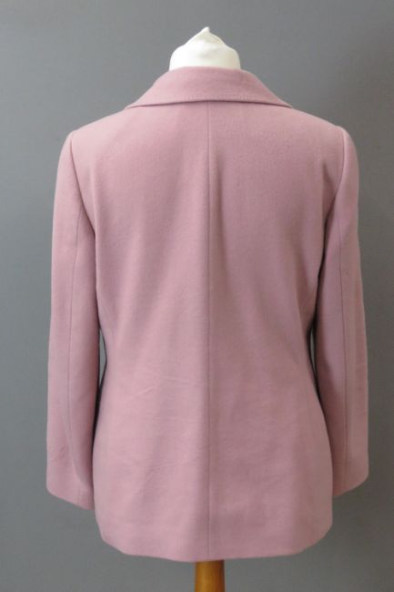 A blush pink jacket, 89% wool & 8% cashmere, made by Artigiano, UK size 16. Approx measurements; 42" chest, 27 1/2" length at back inc collar, 17" sleeve length underarm.