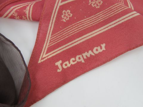 A pink floral scarf by Jacqmar together with three other scarves including two silk items.