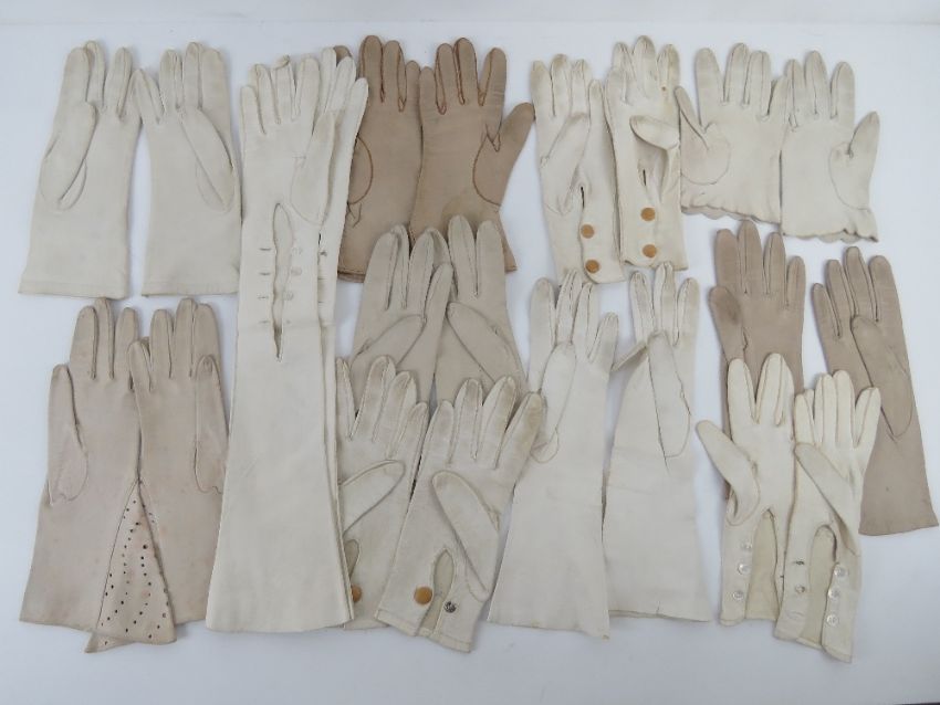 Eleven pairs of leather ladies gloves including elbow length in white and cream