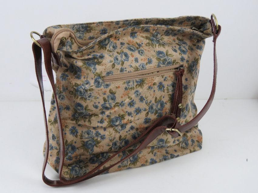 An 'as new' fabric tote bag having blue floral pattern 34 x 30cm.