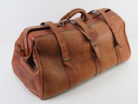 A vintage leather 'Gladstone' type bag by Ben Lhachmi.