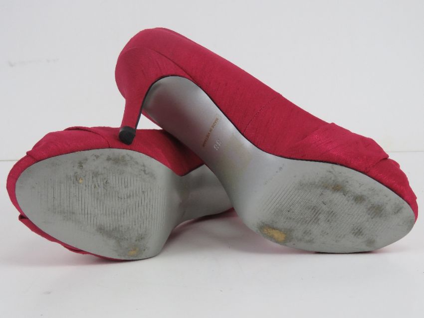 A pair of hot pink peep toe Jacques Vert shoes, size 5, some wear to soles - in box.