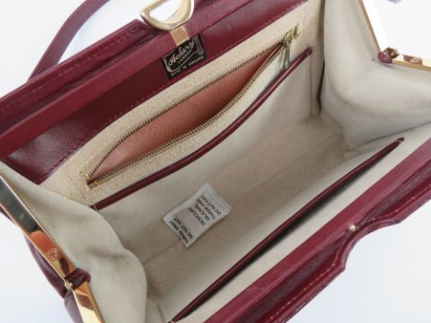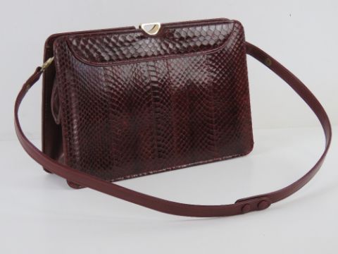 A vintage red leather reptile skin handbag bearing label Ackery London, suede lining, approx measurements 28.5cm wide, 19cm high.