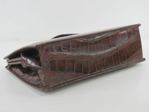 A vintage crocodile skin leather ladies brief case having suede lining, slightly a/f (pen marks noted), approx measurements , 38.5cm wide, 24cm high.