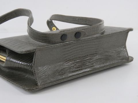 A vintage leather faux reptile skin handbag having suede lining, approx measurements 25cm wide, 21cm high.
