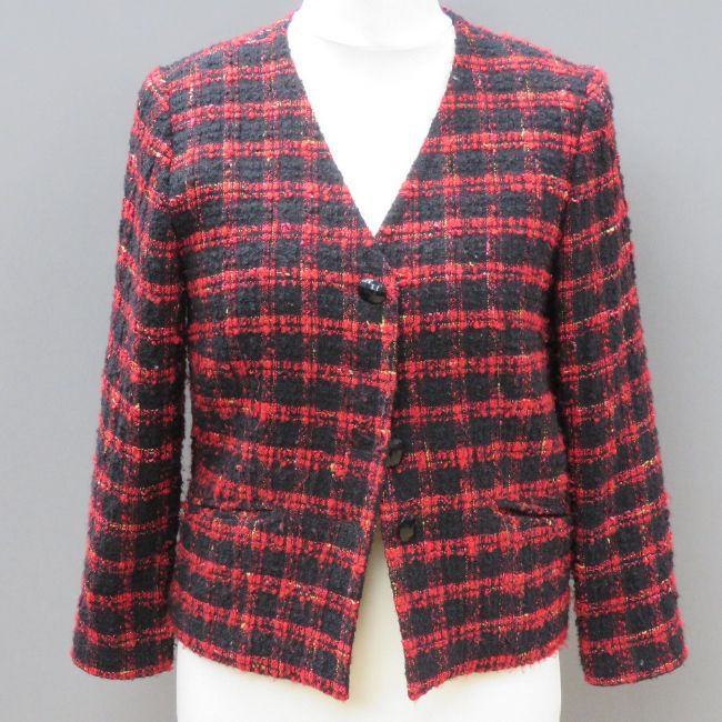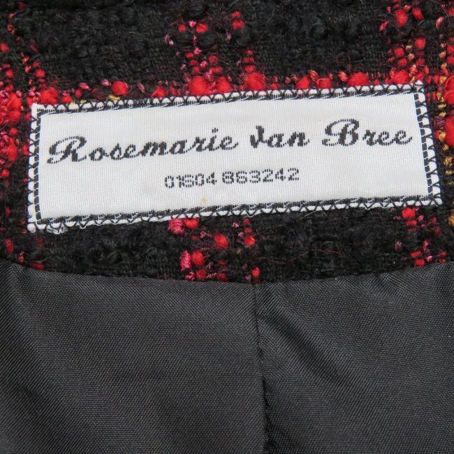Designed and made by Rosemarie van Bree; a red and black tweed jacket, approx measurements - 37" chest, 22" length to back, 15" sleeve.