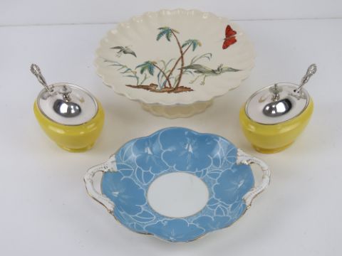 A single Copeland fluted and footed tazza, together with a George Jones dish and Paragon china condiment bowls each with lid and spoon.