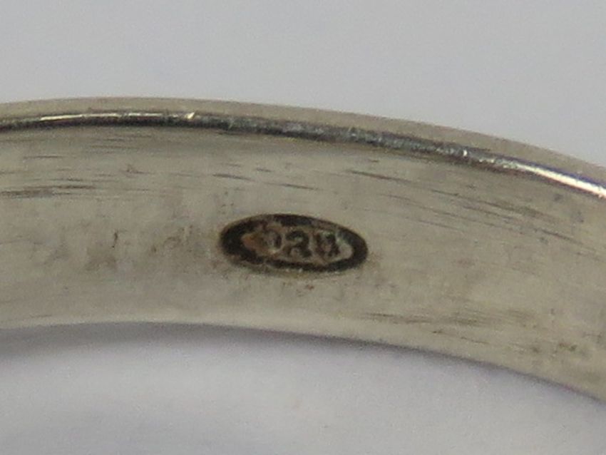 A silver 'X' shaped ring, stamped 925, size P, together with three other 925 silver rings . Four items.