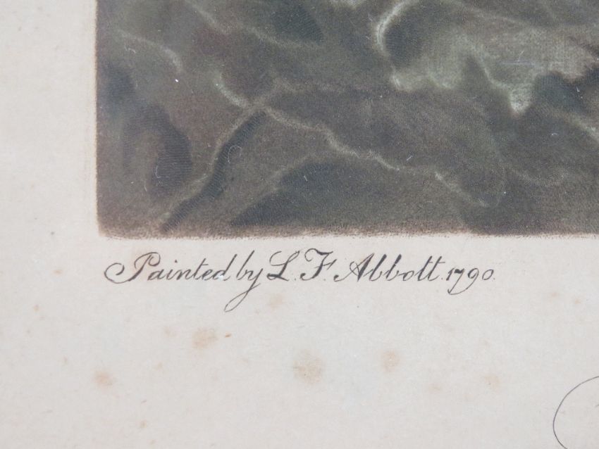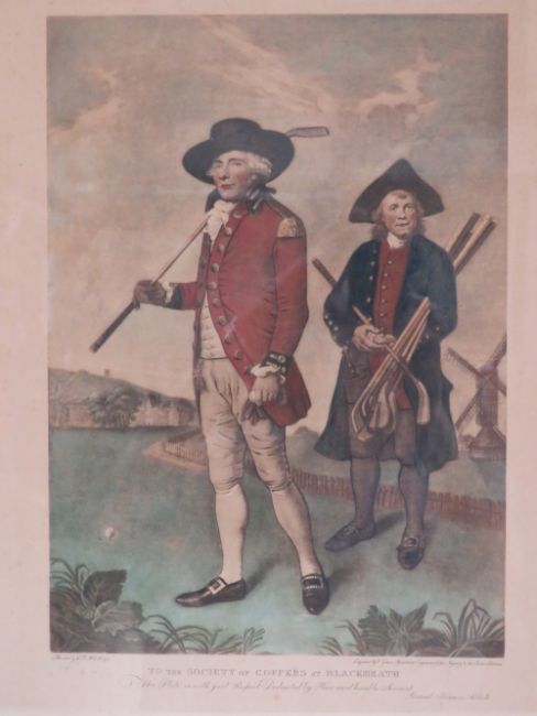 Coloured print 'To the Society of Goffers at Blackheath as painted by L J Abbot 1790', hogarth frame, 65 x 49cm.