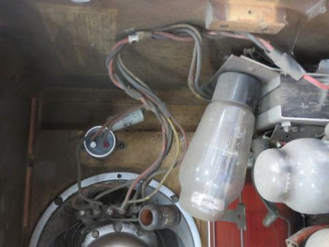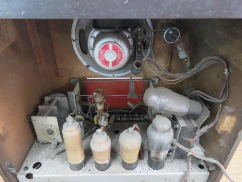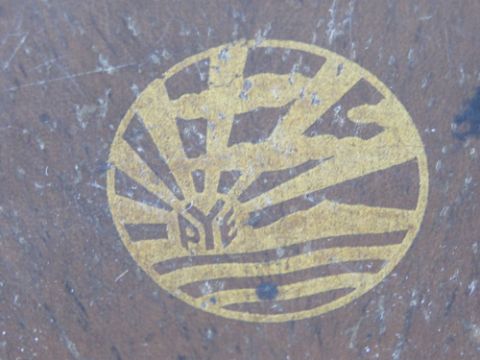 A c1930s vintage Pye radio in half veneered walnut cabinet, 44cm wide, a/f.