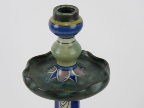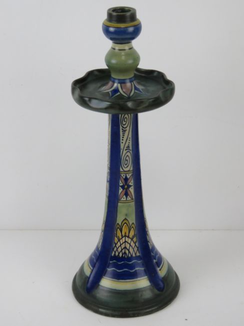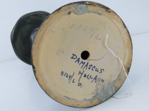 A ceramic table lamp base in blue and green ground marked Damascus Holland 0124/2 to base and standing 42cm high.