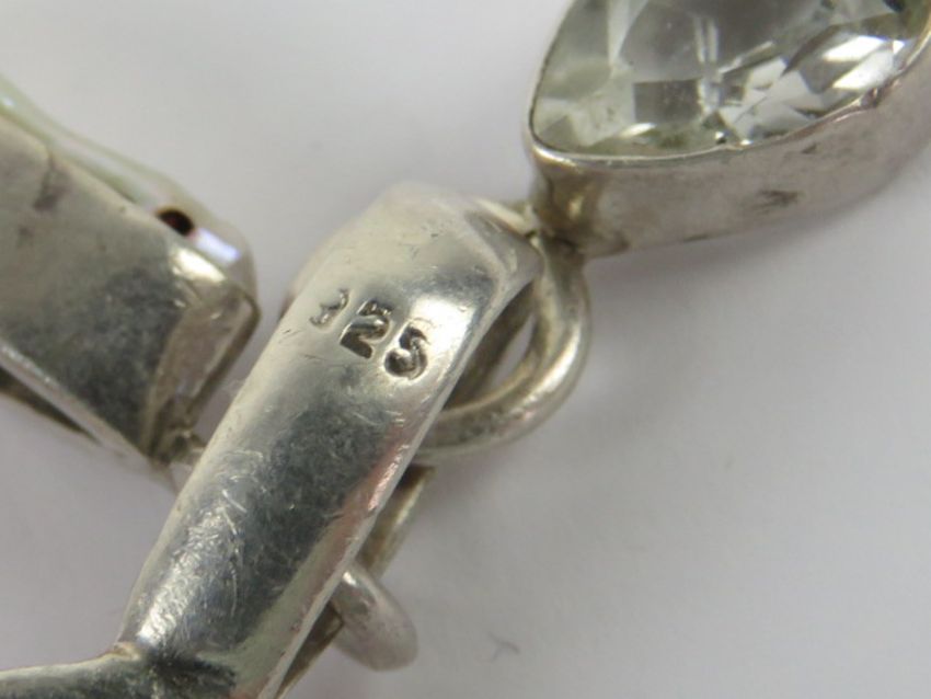 A large pink banded agate, pearl and CZ pendant, stamped 925 and measuring 7.8cm inc bale.