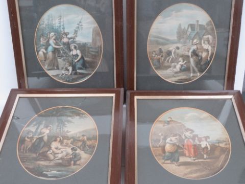 A set of twelve months of the year re-struck oval mounted prints in wooden frames, January - December, each measuring 40 x 47cm.