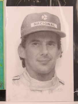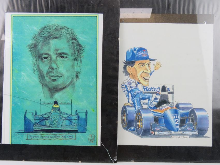 Four contemporary frame less framed Ayrton Senna prints.