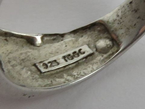 A silver cocktail ring set with blue and white stones, stamped 925, size O.