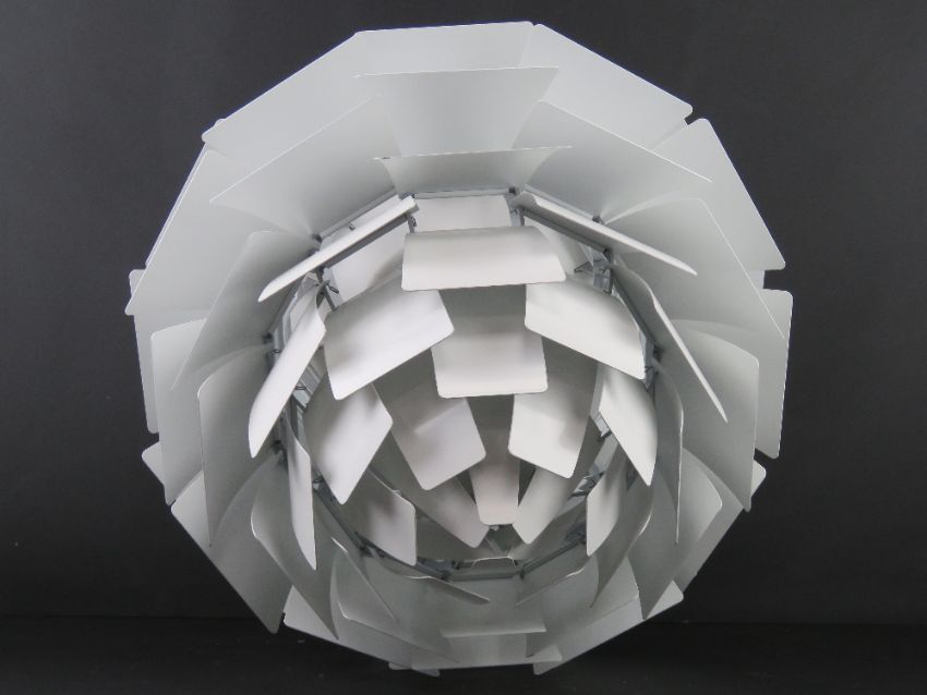 A Louis Poulsen PH Artichoke ceiling pendant light, white and stainless steel. Approx overall height inc drop 97cm, approx width 48cm at widest part.