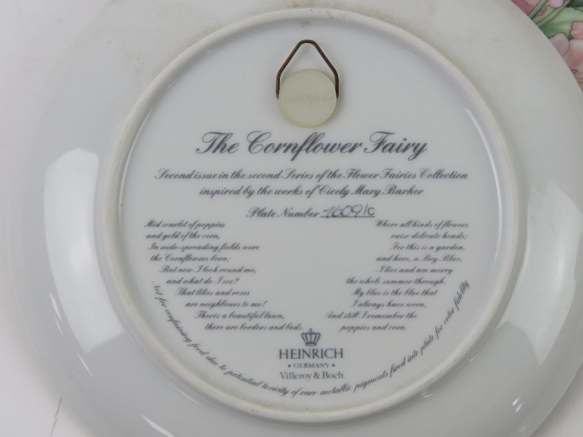 A set of four Villeroy & Bosch flower fairy plates based on the drawings of Cicely Mary Barker. Together with another similar by Border Fine Bone China. Five items.