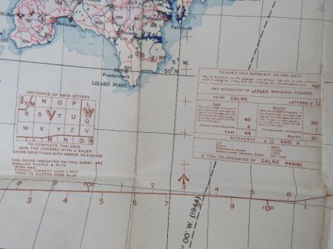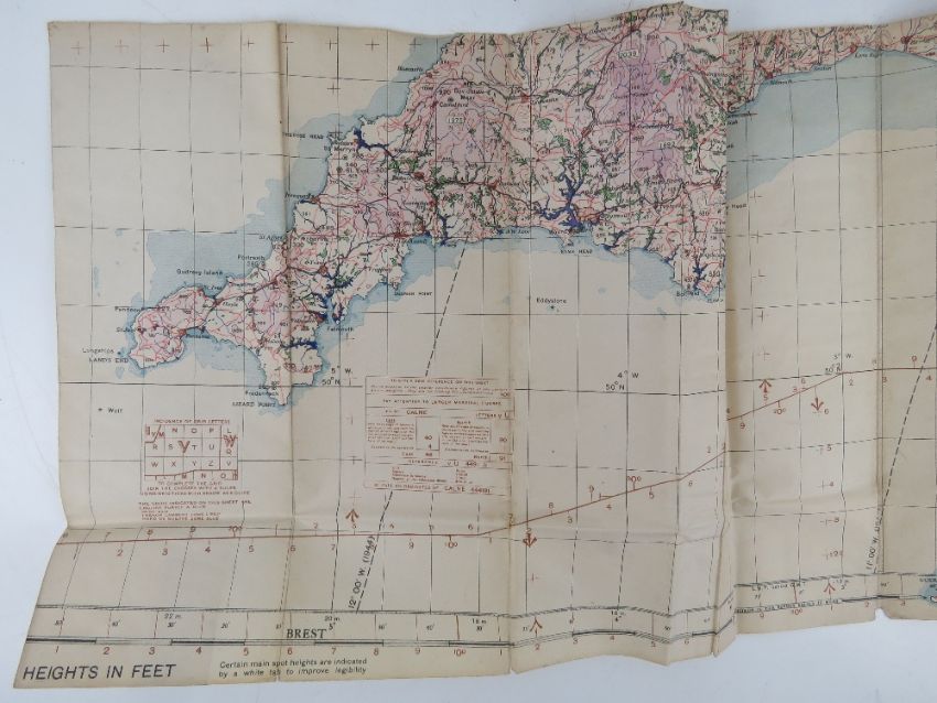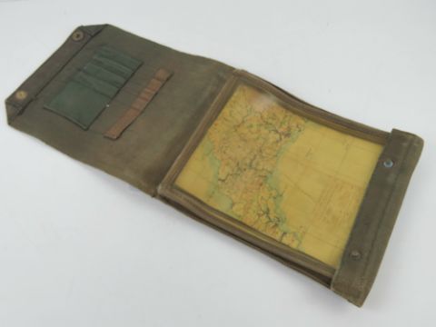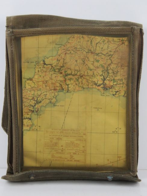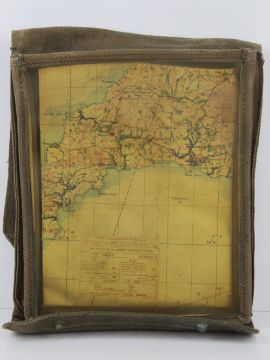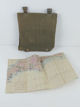 A canvas navigator's pouch having map of English coastline and Channel, dated 1944.