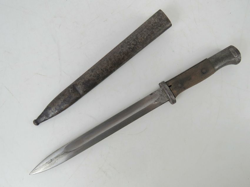 A WWI German K98 bayonet marked for J. A. Henckels, having 25cm blade, with scabbard.