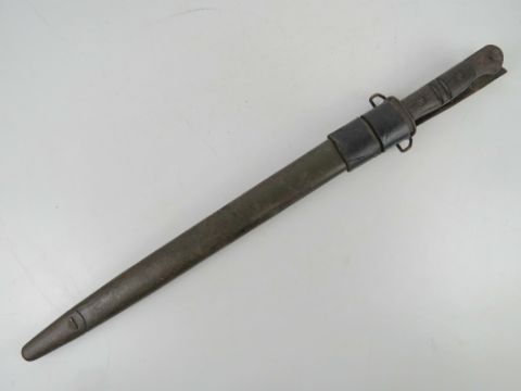 A P14/17 bayonet 44cm blade and wooden grip, with scabbard and frog.