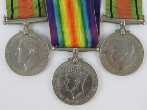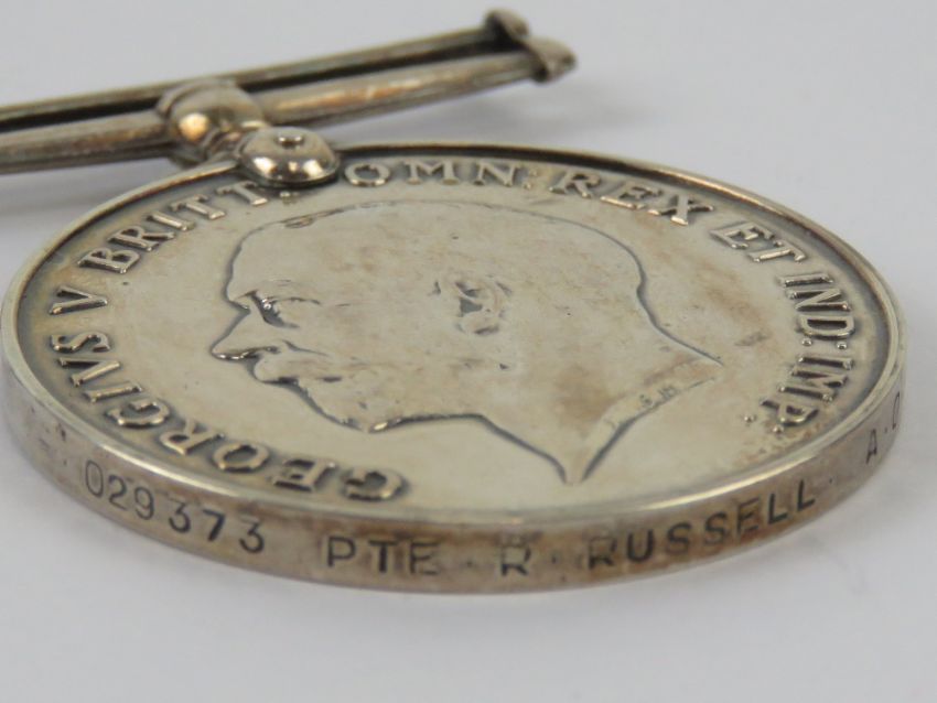 Two WWII medal pairs, each being War & Defence medals, one war medal engraved for 029373 PTE.R.RUSSELL AOC.