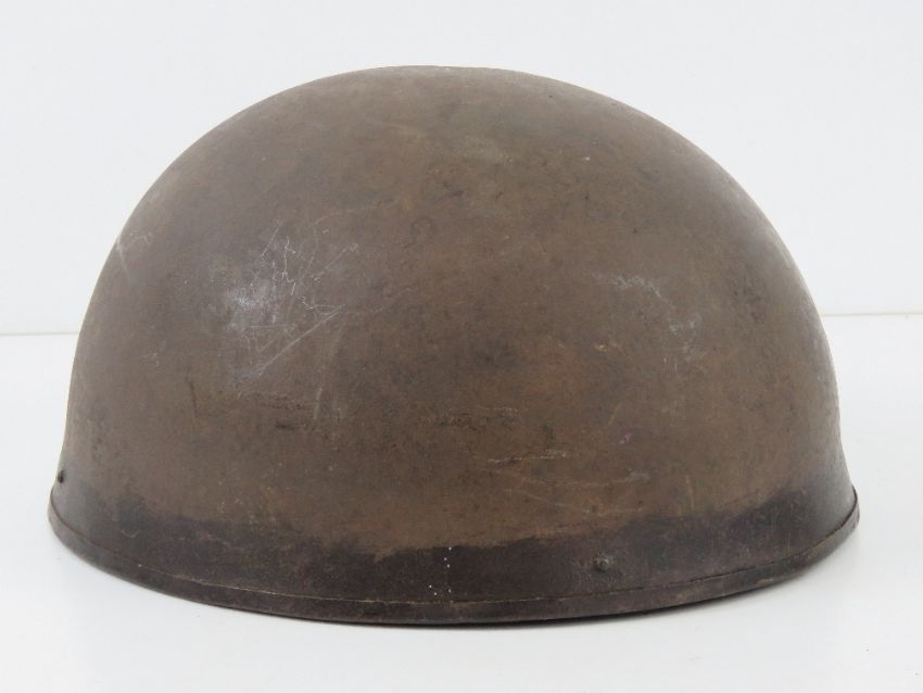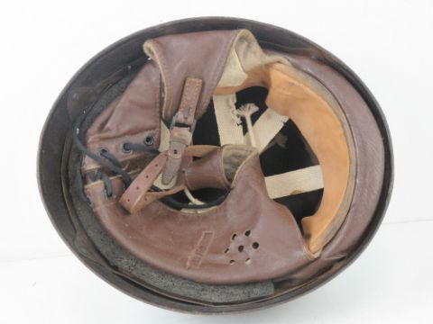 A post WWII despatch rider's helmet having leather liner inc chin strap and ear covers, size 7, dated 1949.