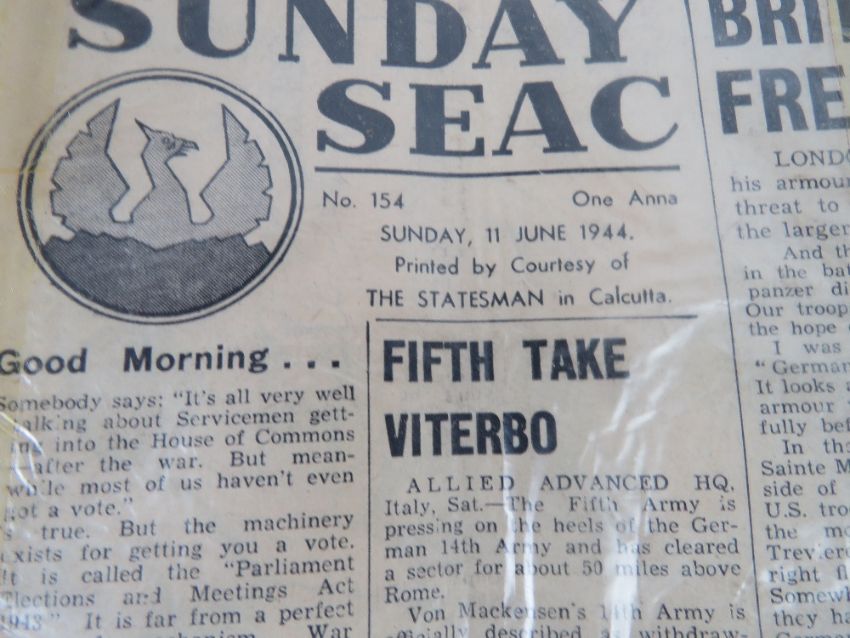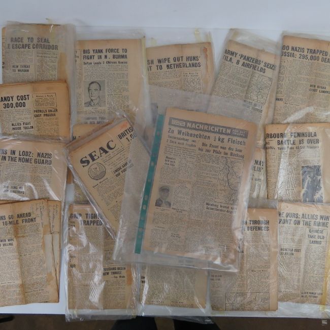 A quantity of SEAC newspaper articles (a services newspaper of South East Asia Command), c1944-1945. Twenty items.