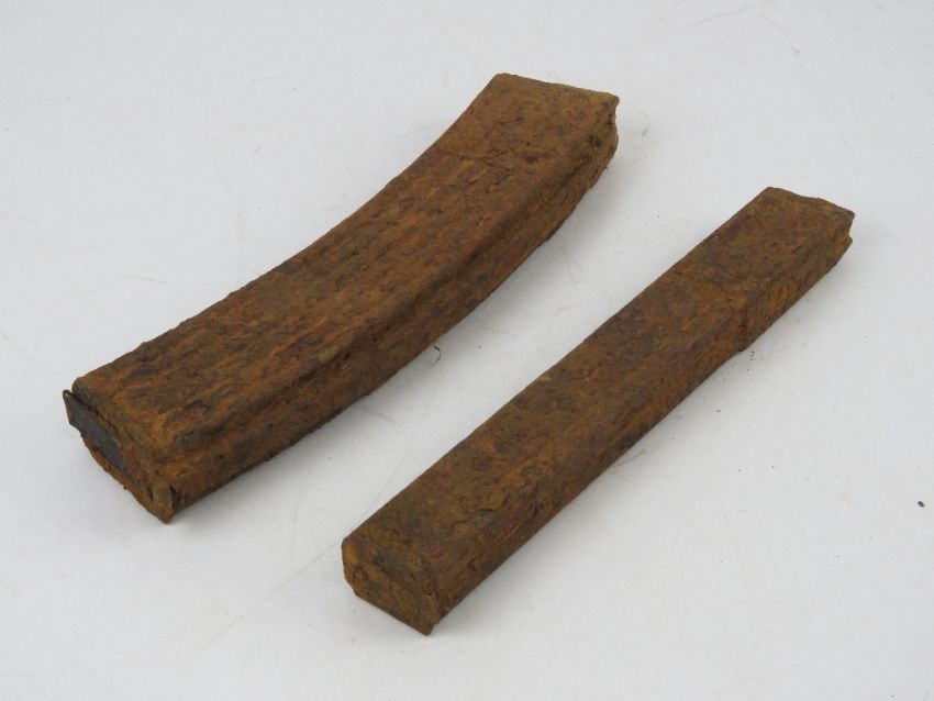 A German MP40 magazine, together with an MP44 magazine, both in relic condition. Battlefield relic found in the Kurland Pocket (Latvia).