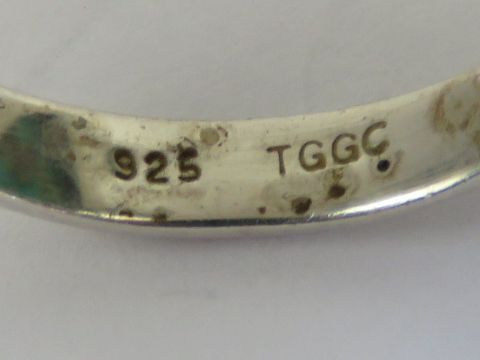 A silver and turquoise cocktail ring, the marquise cabachon of good green hue, stamped 925 with retailers mark, size P.